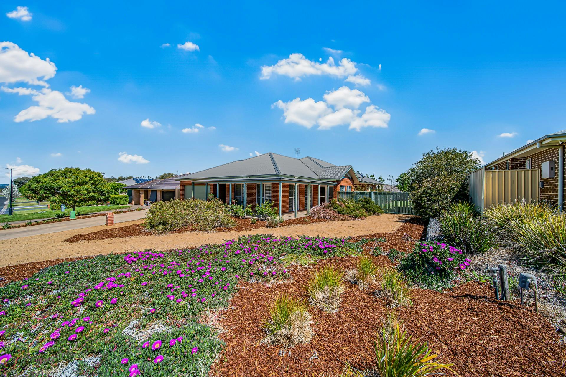 - Low maintenance and hardy gardens with full irrigation, citrus trees, granite paths and gated side access to the yard
